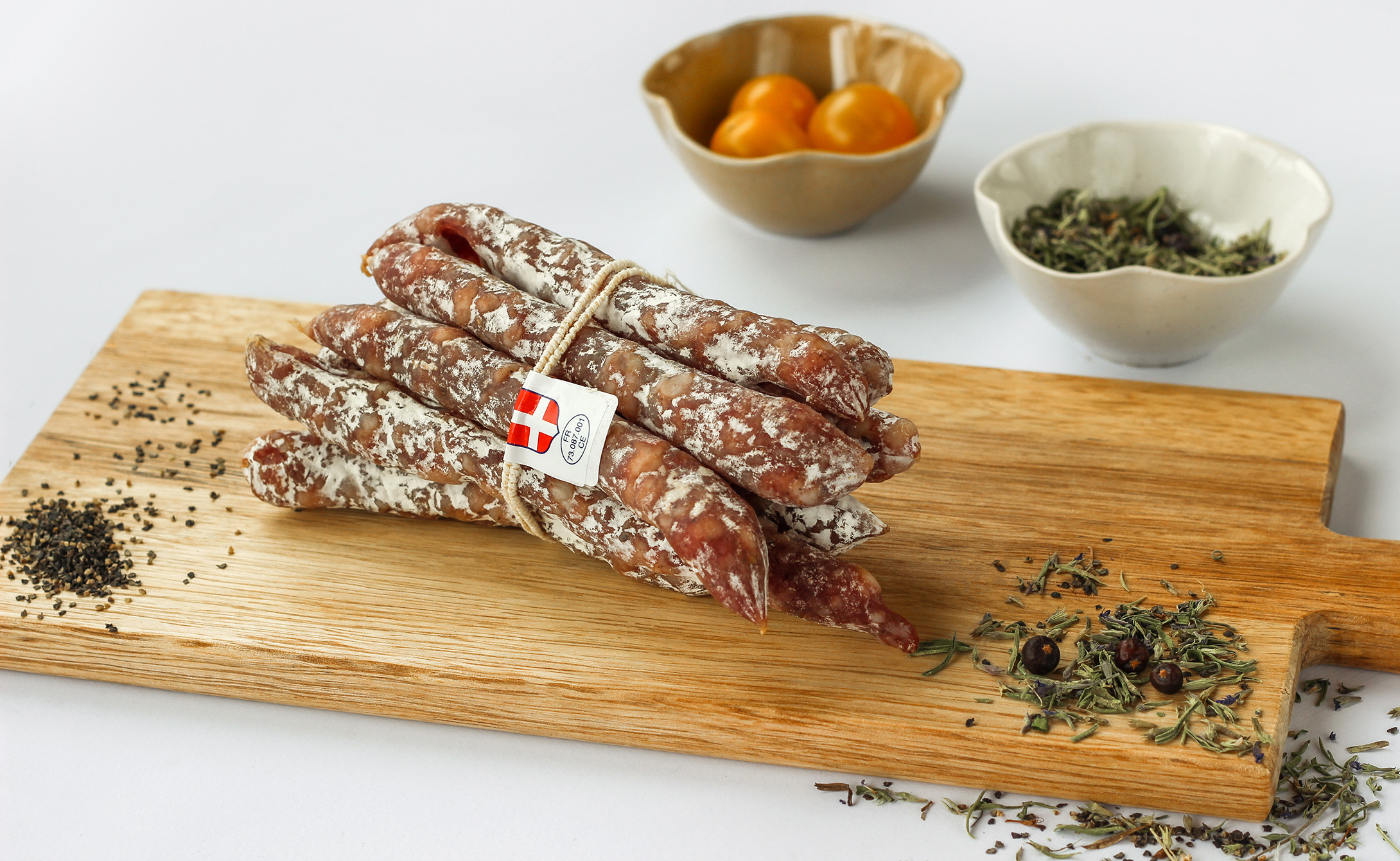 Tous les produits sont entièrement fabriqués dans l’atelier de Cognin et portent fièrement la croix de Savoie, un véritable atout commercial, y compris en dehors des frontières régionales, grâce à la réputation d’excellence des produits savoyards. Les équipes sont engagées dans une démarche continue vers plus de naturalité, avec pour objectif la réduction des additifs et des allergènes. Cette orientation répond à la fois à une conviction forte et à une demande croissante des consommateurs. Aujourd’hui, la salaison est reconnue pour sa large gamme de spécialités savoyardes, élaborées à partir de viande fraîche d’origine française et d’herbes aromatiques issues du massif des Bauges.