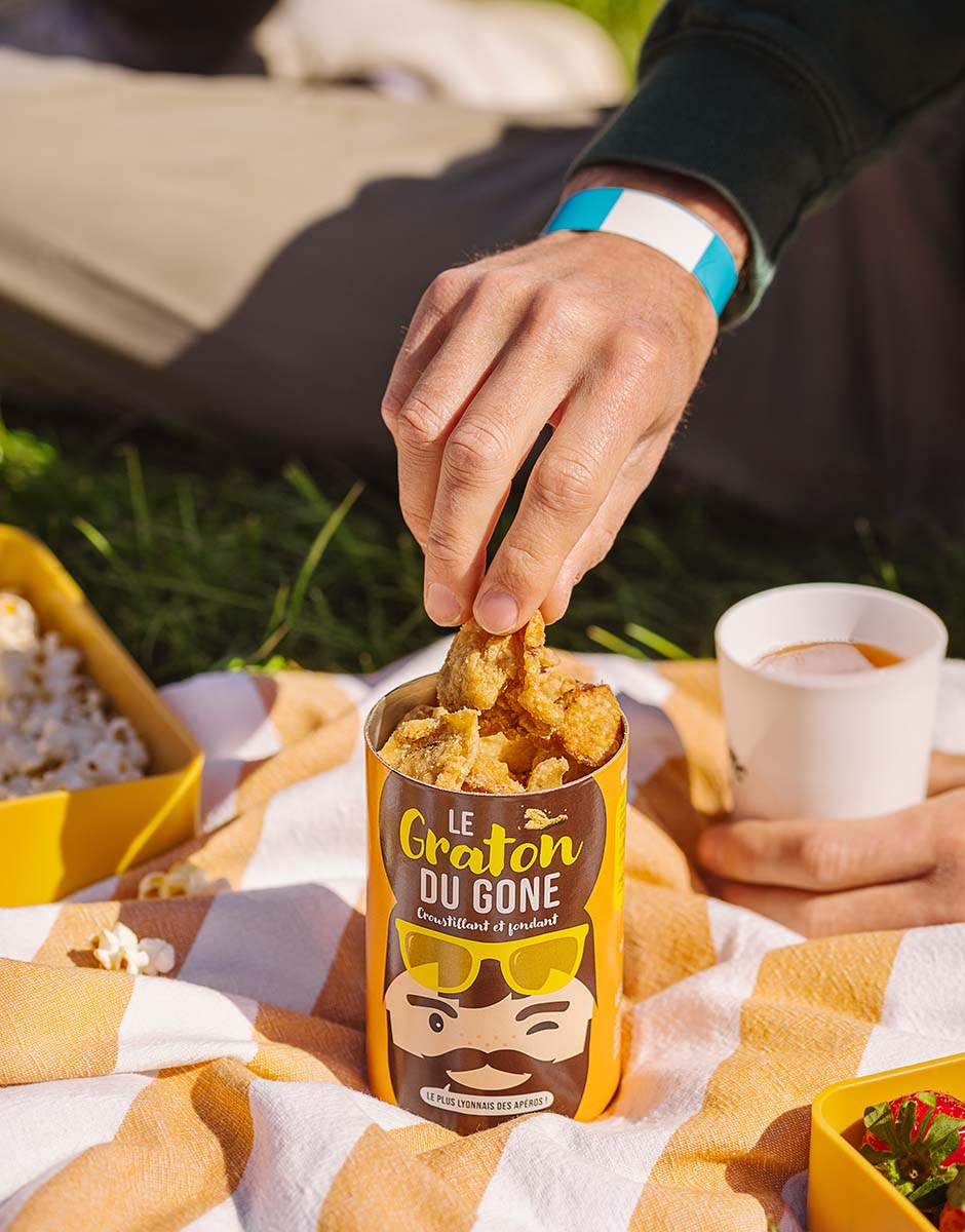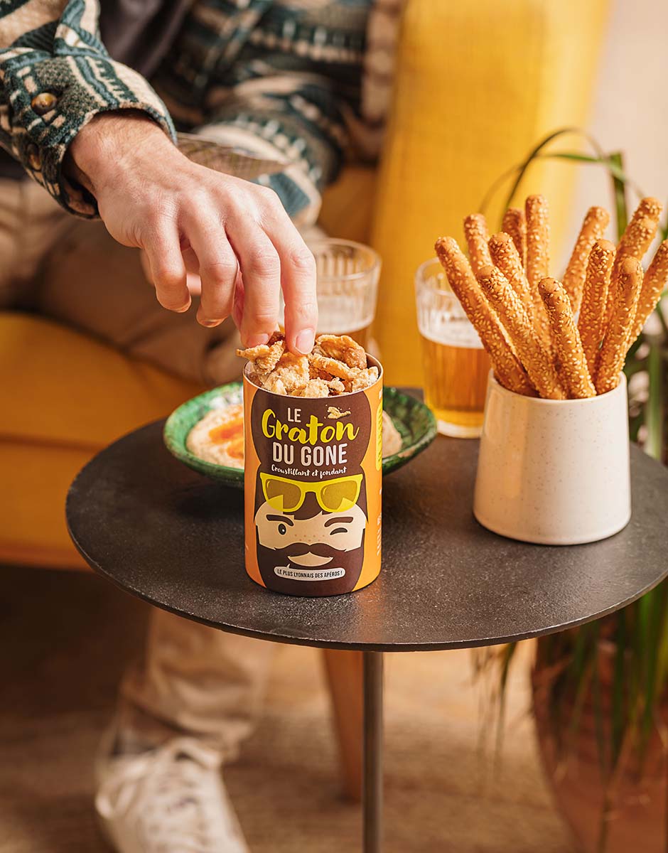Depuis 2024, le graton lyonnais s’offre un nouveau packaging, idéal pour le snacking et devient un incontournable de l’apéritif avec sa marque Le Graton du Gone.